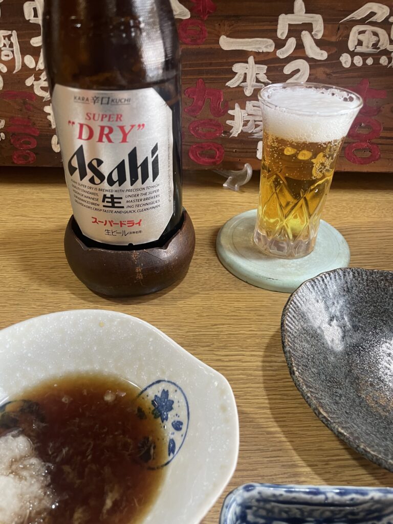 味噌汁、小鉢とコーヒーが付いて、1050円。瓶ビールも頼みましたよ。冷えてて最高~。